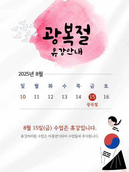 [수업안내] 삼일절 대체휴일 3/2(월) 수업 휴강 안내드립니다.