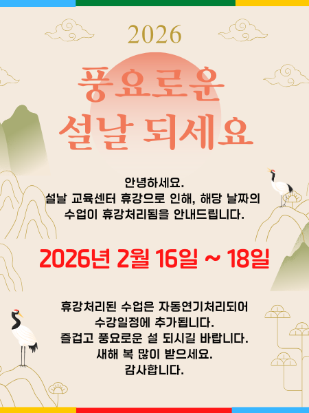 [수업안내] 삼일절 대체휴일 3/2(월) 수업 휴강 안내드립니다.